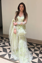 Sapna Gulati In Our Lime Green Net Peplum Sharara Set